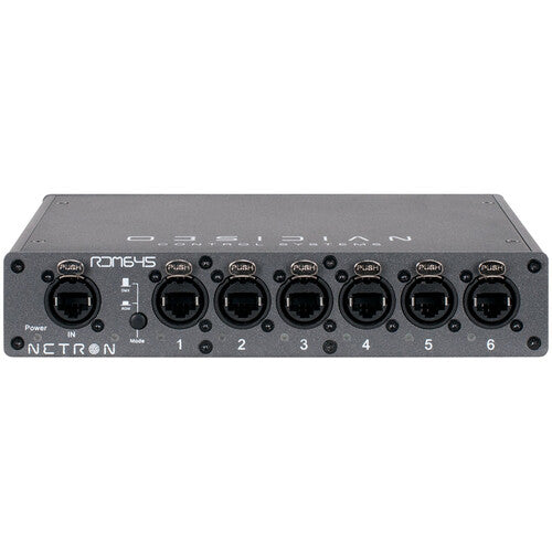The Obsidian Netron RDM 645 DMX/RDM Splitter is a rugged and compact unit designed for live productions and installations. It features six opto-isolated RJ45 DMX outputs and flexible mounting options to cover any situation.